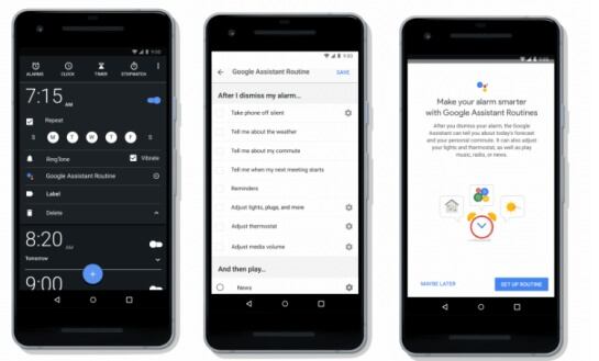Con la aplicación Google Rutinas, después de que suena la alarma, el Asistente de Google puede comenzar una rutina de inmediato. Por ejemplo, activando varias cosas, como compartirle datos del clima y del tráfico para su trabajo, además puede encender la cafetera y las luces o escuchar las noticias y muchas opciones más.