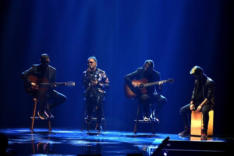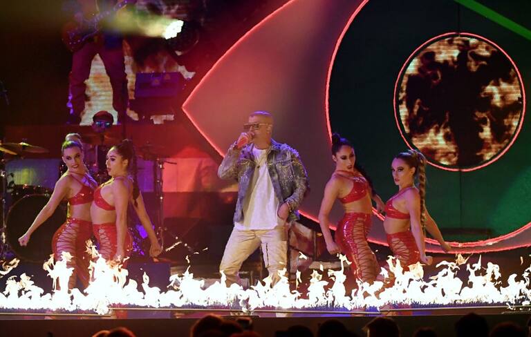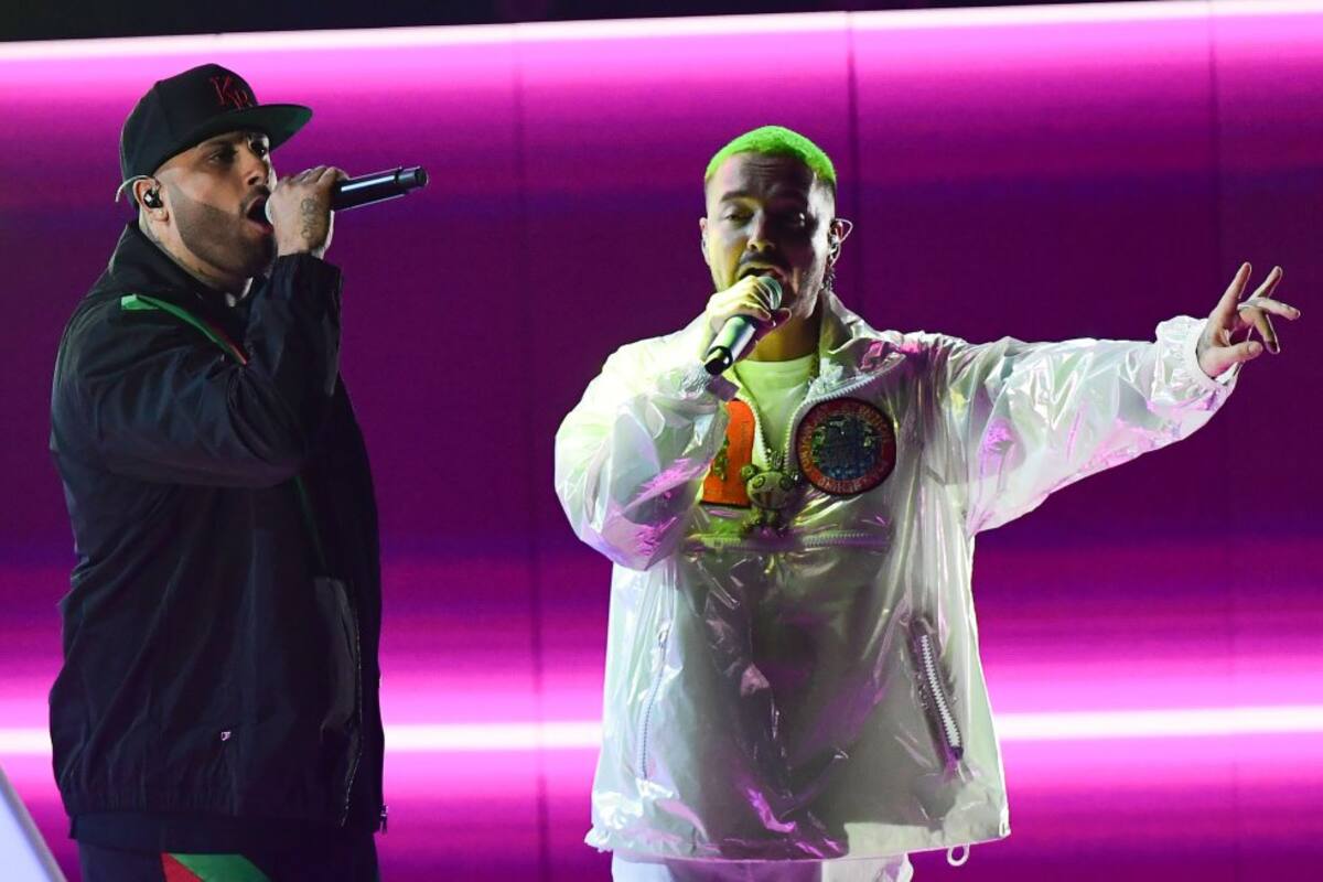 Steve Aoki y Nicky Jam en su presentación en los Latin Grammy