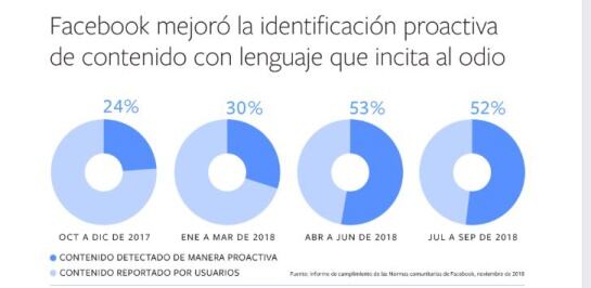 Según el Informe de Transparencia de la compañía el discurso de odio detectado alcanzó 52% respecto al 24% del primero.