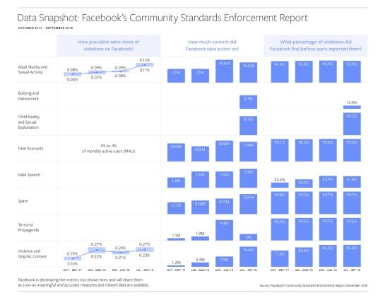 Durante los últimos dos años Facebook se ha visto sumergido en una serie de escándalos debido al manejo de material inapropiado que se difunde en la plataforma, como publicaciones sensibles y noticias falsas. Según datos de la compañía en los últimos dos trimestres se han eliminado más de 1.500 millones de cuentas falsas.