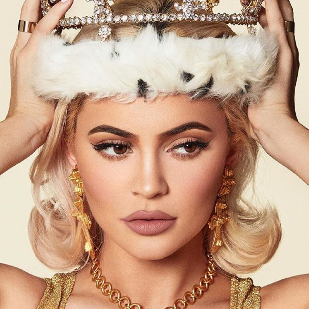 Con un sensual vestido dorado y sosteniendo una corona se le ha visto a Kylie Jenner en las redes sociales.
