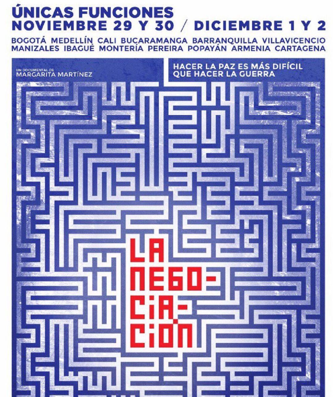 Cine Colombia inicialmente tiene previsto proyectar el documental desde el jueves 29 de noviembre hasta el domingo 2 de diciembre en 13 ciudades del país, en 24 salas. Aún no está claro, según Martínez si finalmente se pasa o se cancelan las funciones.