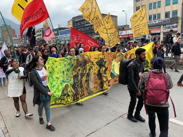 Todos juntos marchan por las calles de Bogotá en pro de una educación pública.