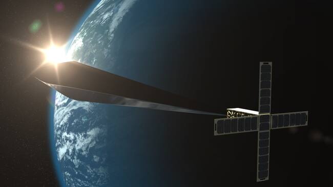 Una vez en órbita, este nanosatélite desplegará una especie de velamen con forma de rombo alargado de unos 30 metros de largo y elaborado de una tela de polietileno de aspecto metálico, que reflejará la luz del sol y será la que permita que esta peculiar obra de arte pueda avistarse desde la Tierra.
