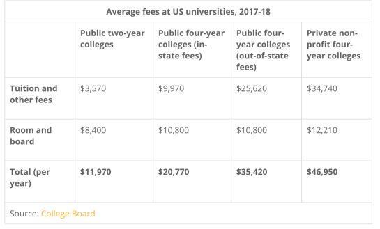 Esto se da en gran parte porque muchas personas más quieren estudiar y los gobiernos estatales están dejando de subsidiar las universidades públicas obligando a los estudiantes a pagar lo que antes eran subsidios. De ahí que universidades públicas como la universidad de Rutgers in Nueva Jersey y la Universidad Estatal de Ohio cobren hasta 25 mil dólares por año (75 millones de pesos por año). Esto sin hablar de lo que valen las universidades privadas en las que los estudiantes y sus padres terminan pagando un cuarto de millón de dólares por graduarse de universidades como Harvard, Yale, Columbia o Princeton.