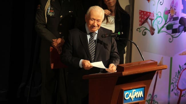 Foto 8 de 21El ex presidente Belisario Betancur en el teatro de Bellas Artes de Cafam. celebración del Festival Iberoamericano de literatura infantil.