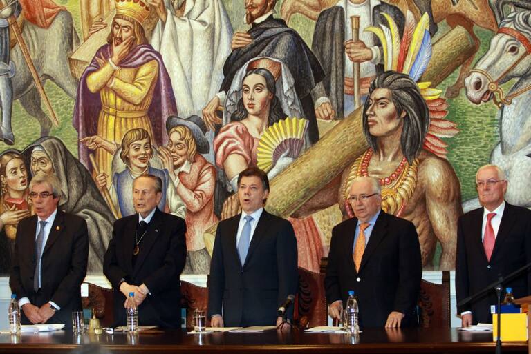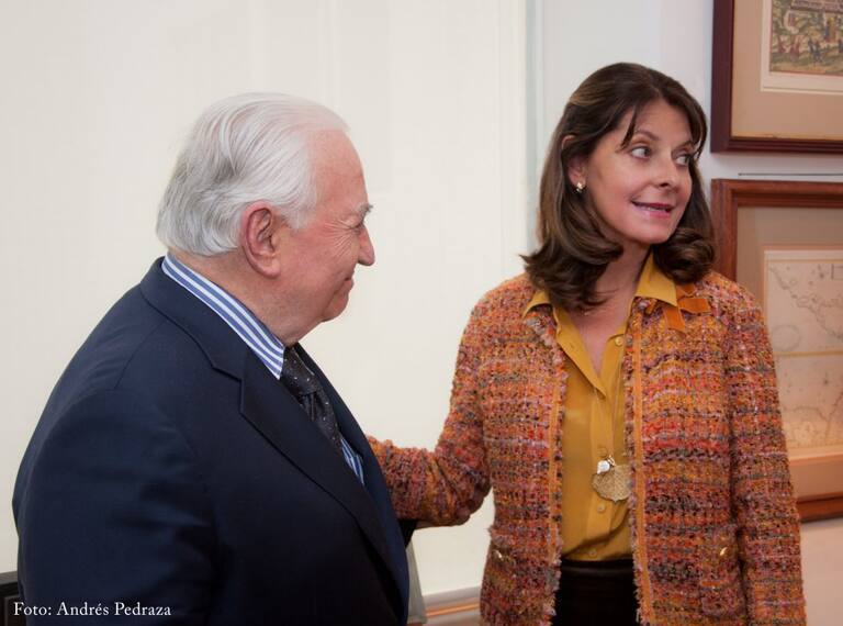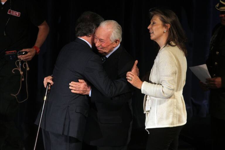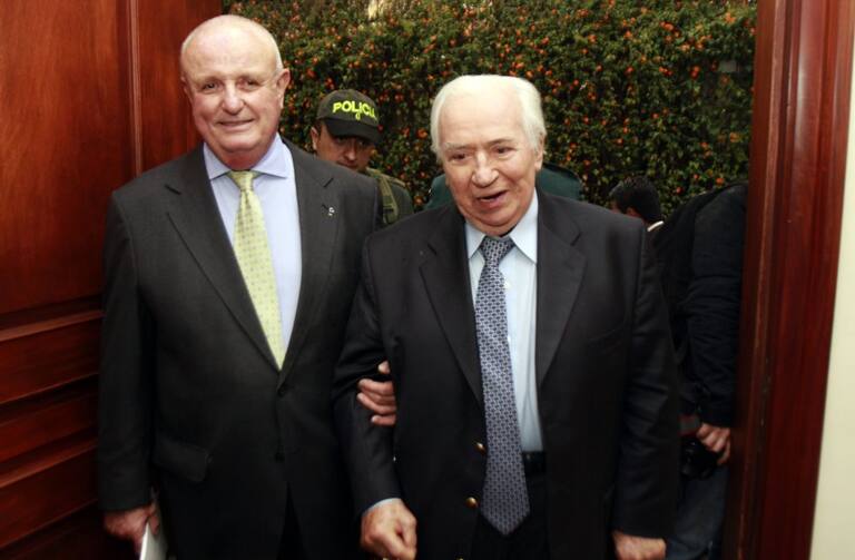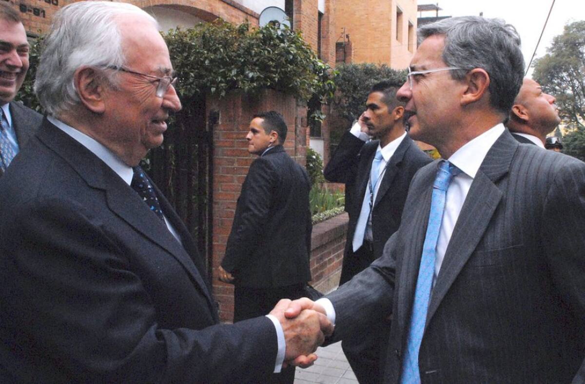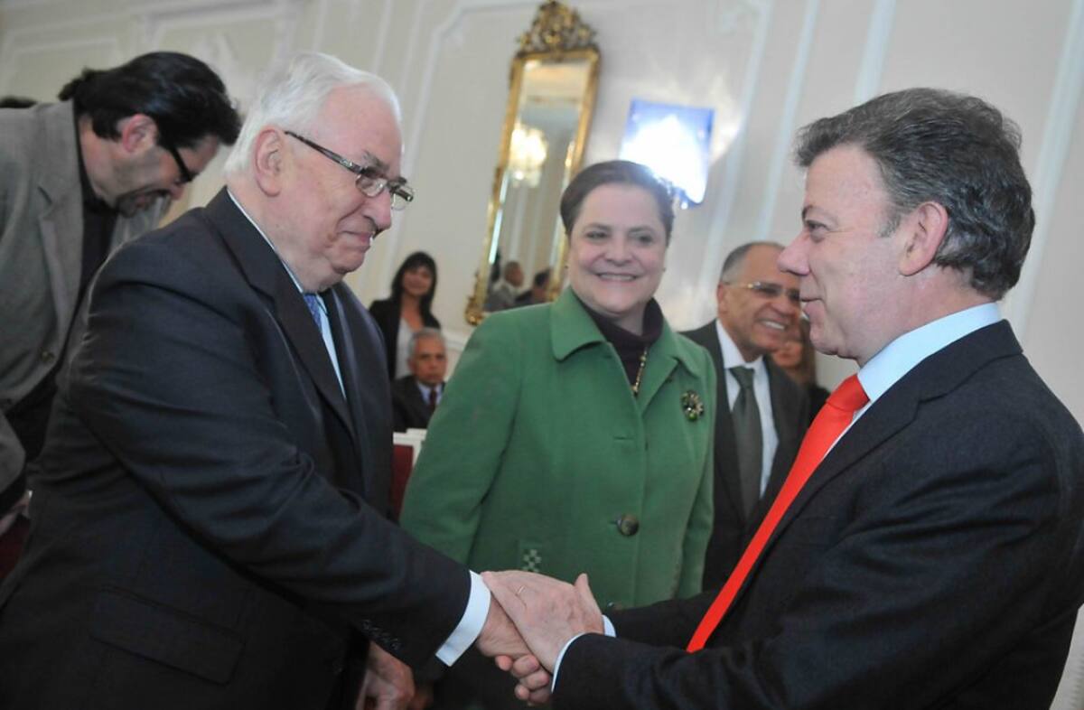 Belisario Betancur acompañado del expresidente Juan Manuel Santos