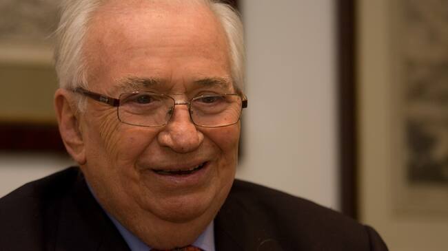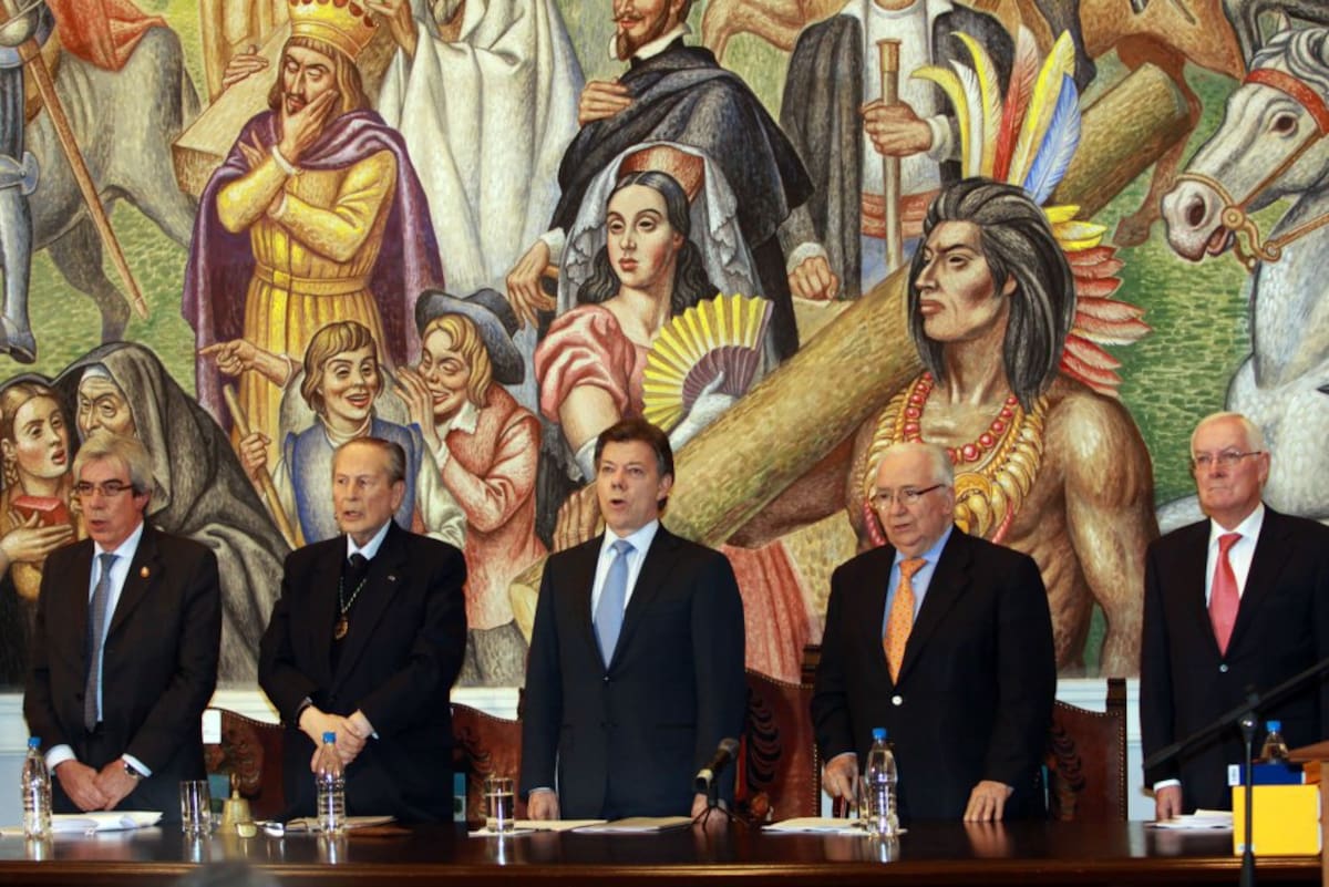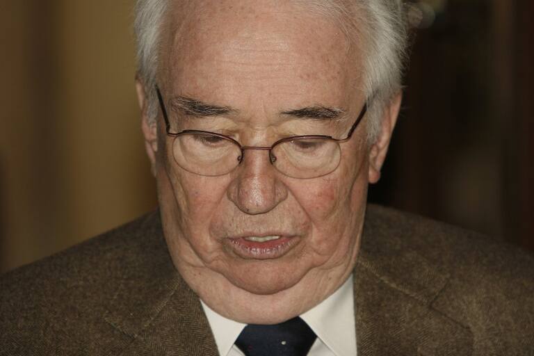 El expresidente Belisario Betancur durante la conmemoración de los 140 años de la academia colombiana de la lengua.