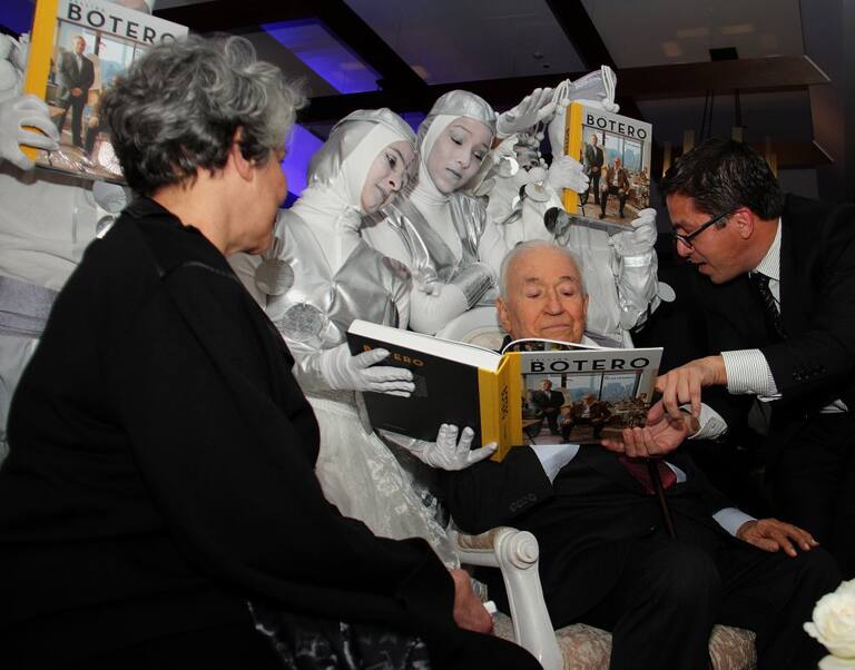 Belisario Betancur en el lanzamiento del libro 'Selling Botero' de Felipe Grinberg