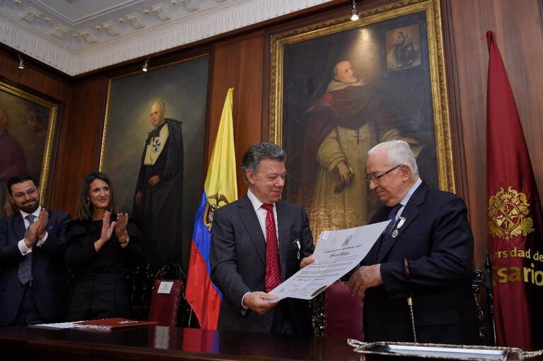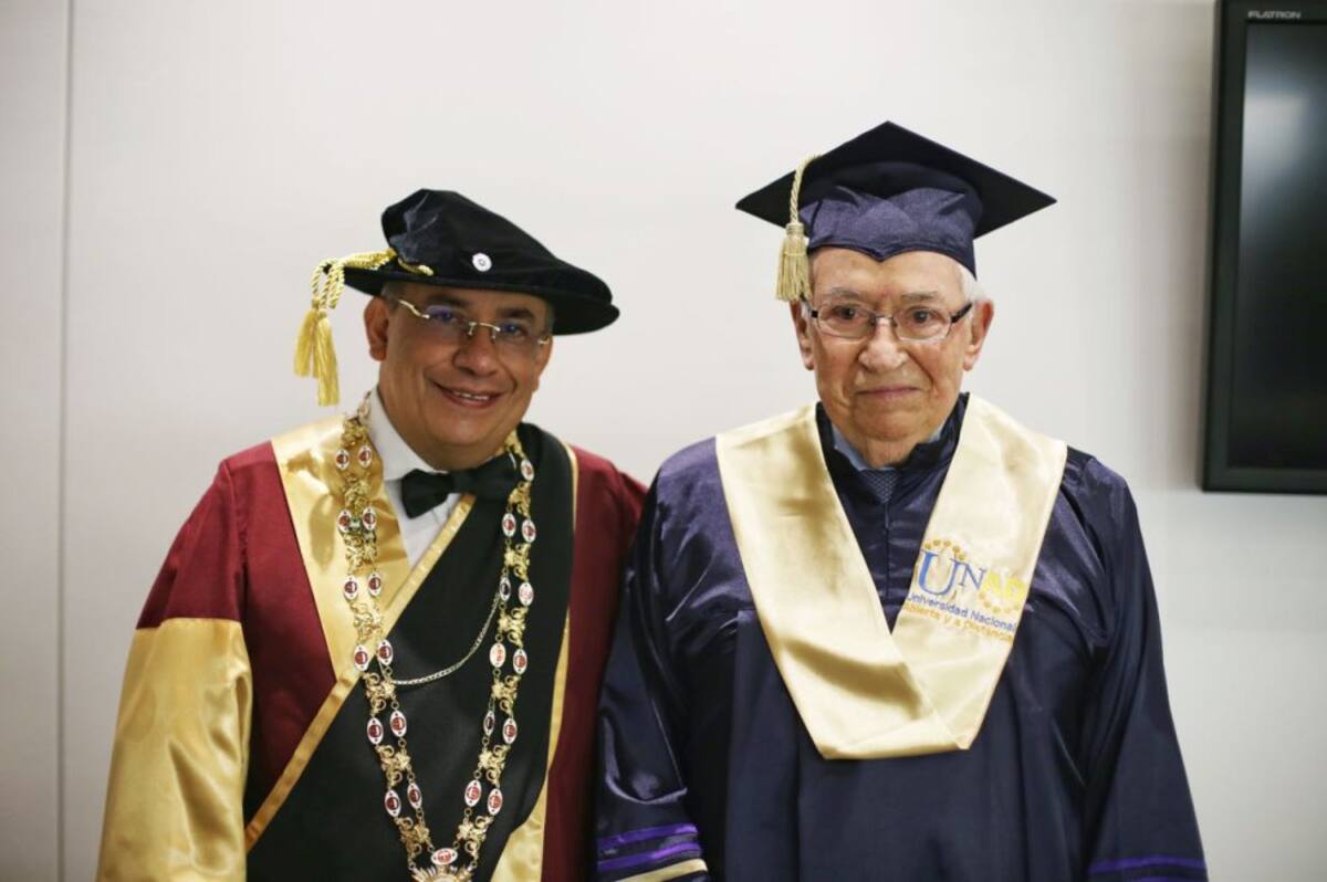 La Universidad Nacional Abierta y a Distancia -UNAD- le otorgó el titulo de Doctor Honoris Causa en Educacion a Distancia y Tecnologia Instruccional al expresidente de la Repúblcia Belisario Betancur