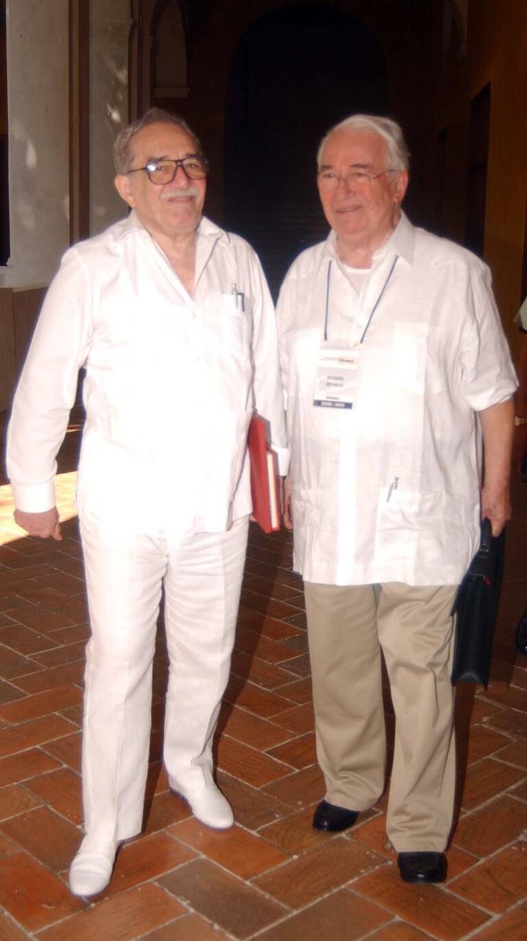 El ex presidente de Colombia, Belisario Betancur y el premio nobel de literatura, Gabriel García Márquez caminando juntos en Cartagena