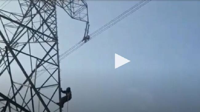 En video quedó registrado el momento en el que un hombre caminó por varios minutos por altos cables de energía.
