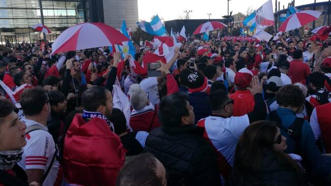 Los aficionados de River Plate colmaron las afueras del hotel de concentración del equipo en Madrid, donde alentaron al plantel horas antes de la gran final de la Copa Libertadores en el estadio Santiago Bernabéu. Los jugadores reconocieron el apoyo y bajaron a saludar a los centenares de hinchas.