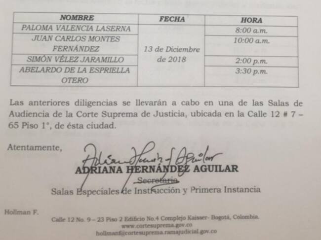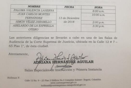 Y a las 3:30 p.m. se escuchará de Abelardo de la Espriella, el abogado que denunció ante la Corte Suprema al senador por el video.