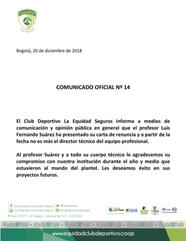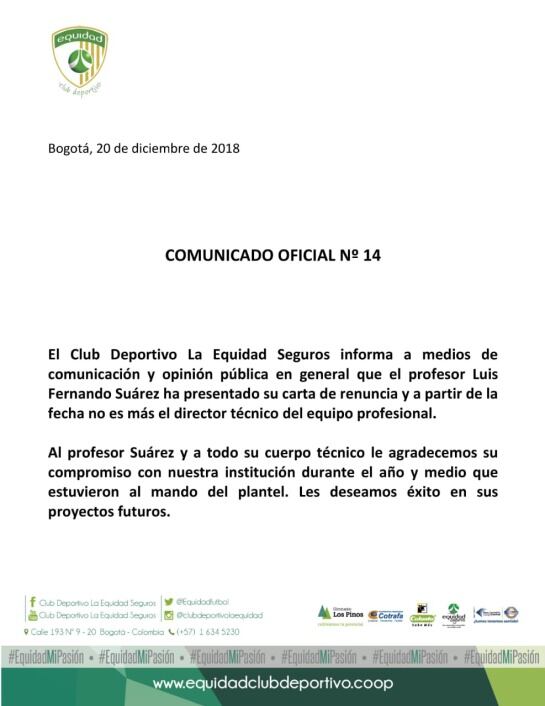 Junior oficializó a través de un comunicado a Luis Fernando Suárez como su nuevo director técnico, el antioqueño de 58 años reemplazará en el cargo al estratega uruguayo Julio Comesaña.