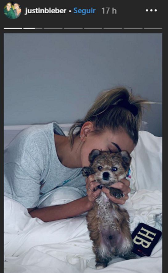 El cachorro, según se aprecia un Yorkie maltés, lució adorable en las historias de Instagram de Justin Bieber y Hailey Baldwin, quienes no dudaron en derrochar amor por Oscar.