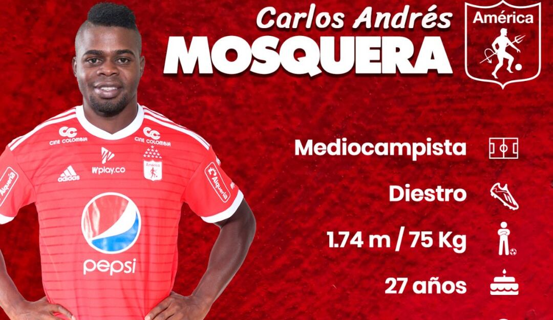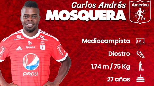 Carlos Mosquera volverá a vestirse de 'Escarlata', el delantero de 27 años regresa al América de Cali tras debutar en dicho equipo en el año 2009. Mosquera llega procedente de Patriotas, luego de sobresalir, especialmente, en el primer semestre del 2018.