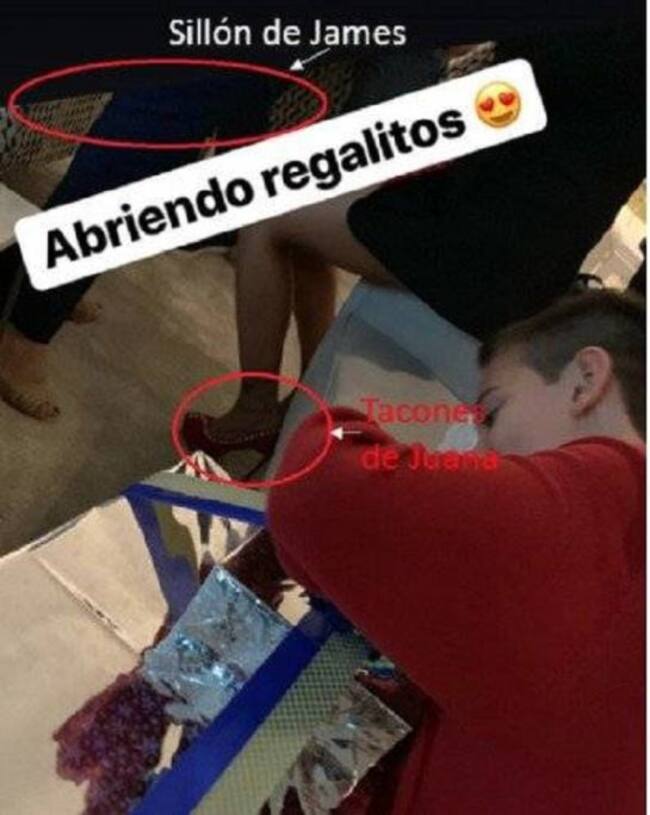 Pero luego la modelo venezolana compartió una historia en su Instagram en la que aparece su hijo abriendo un regalo, a simple vista no se ve nada raro, pero si la detalla se pude ver el mismo sillón en el que estaba sentado el futbolista colombiano y al lado del niño se pude ver el zapato que estaba usando la hermana de James.