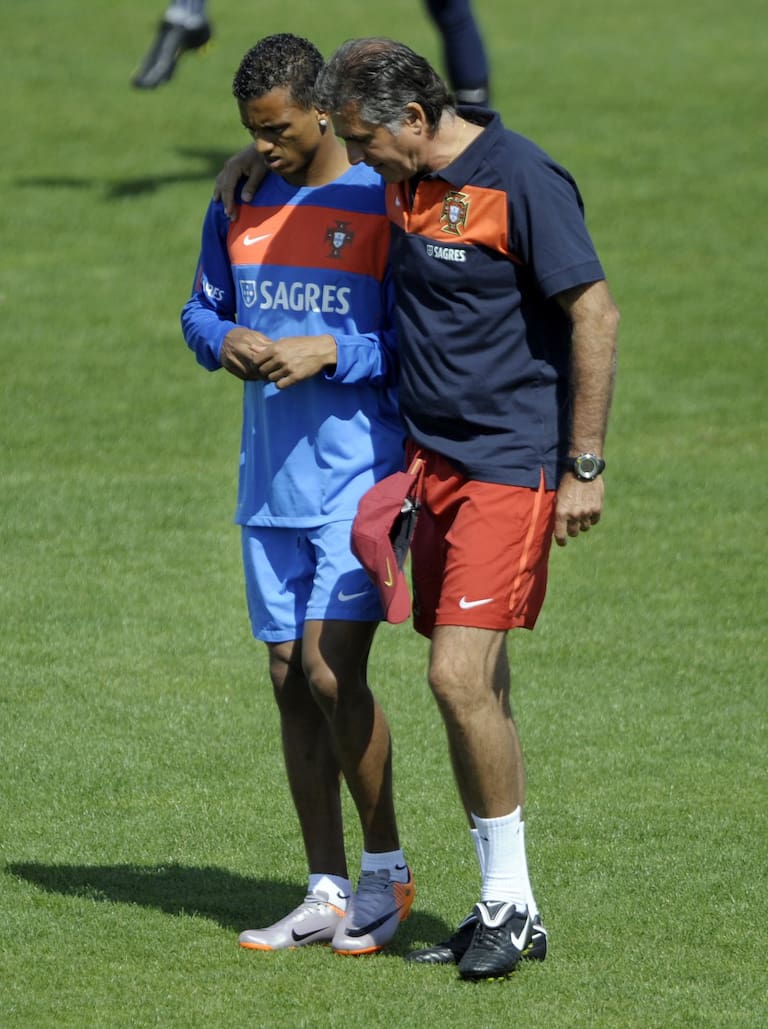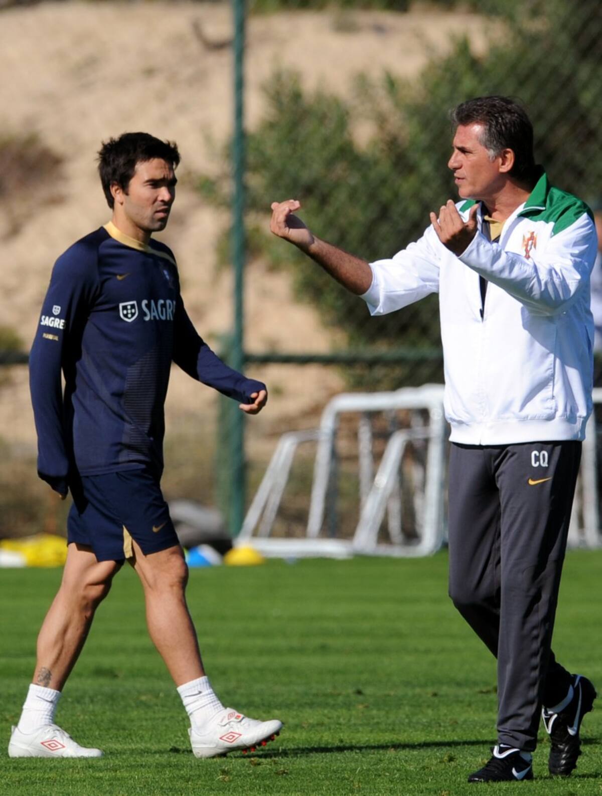 Queiroz dando indicaciones a Nani en entrenamiento
