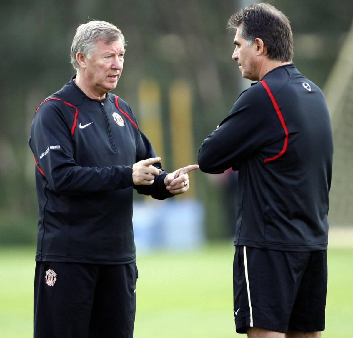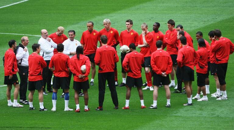 Queiroz dirigiendo un entrenamiento del Manchester United como asistente técnico