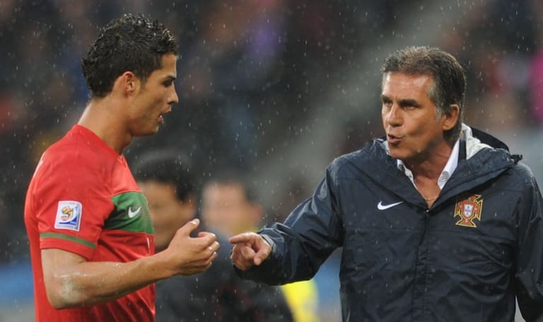 Queiroz dando indicaciones a Cristiano Ronaldo