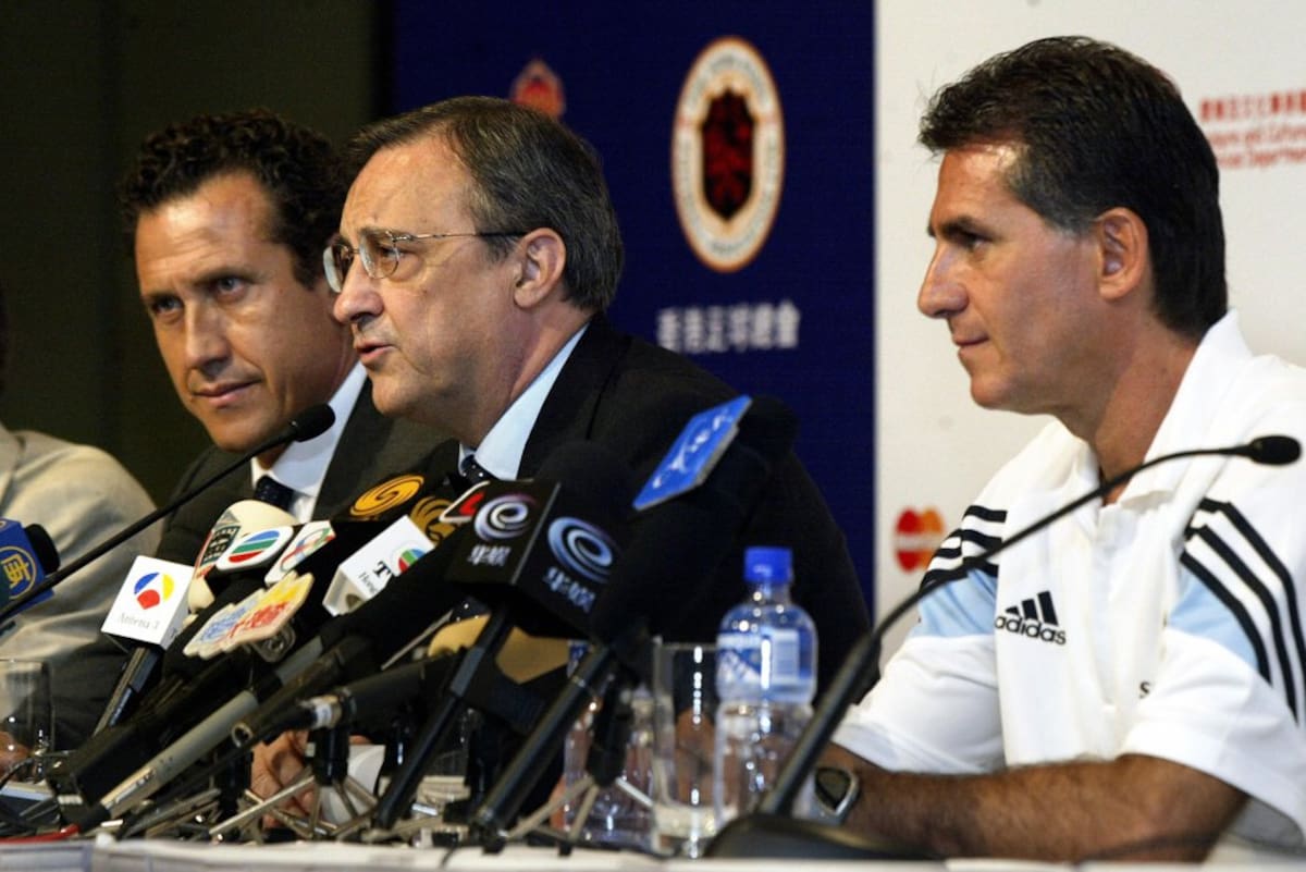 Queiroz en rueda de prensa con Florentino Pérez