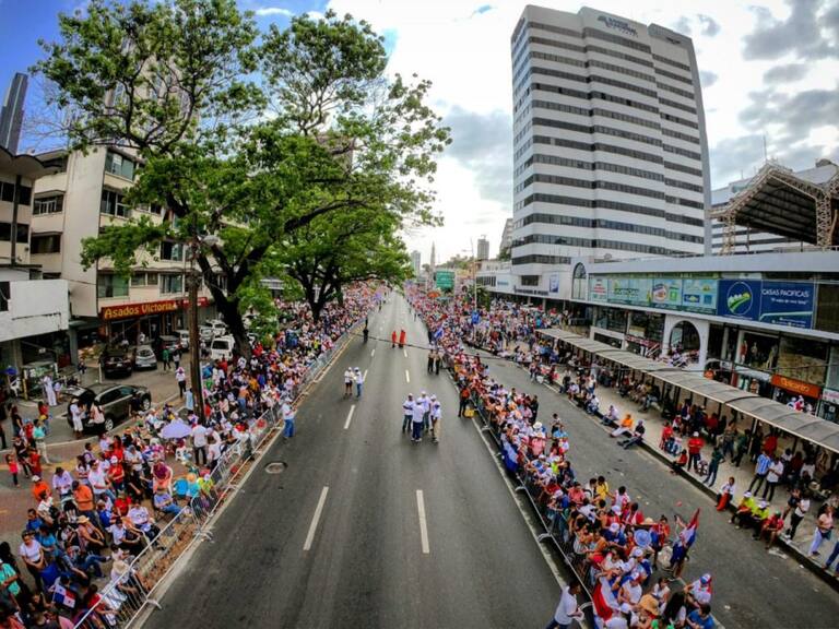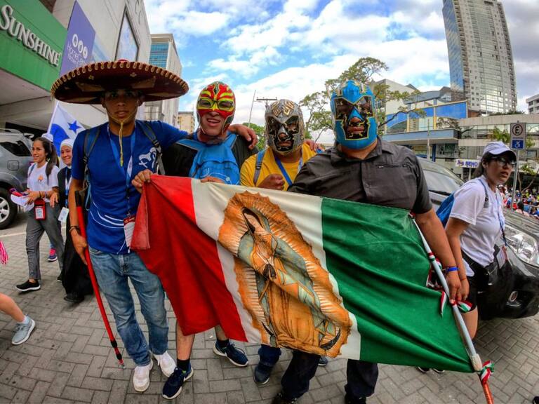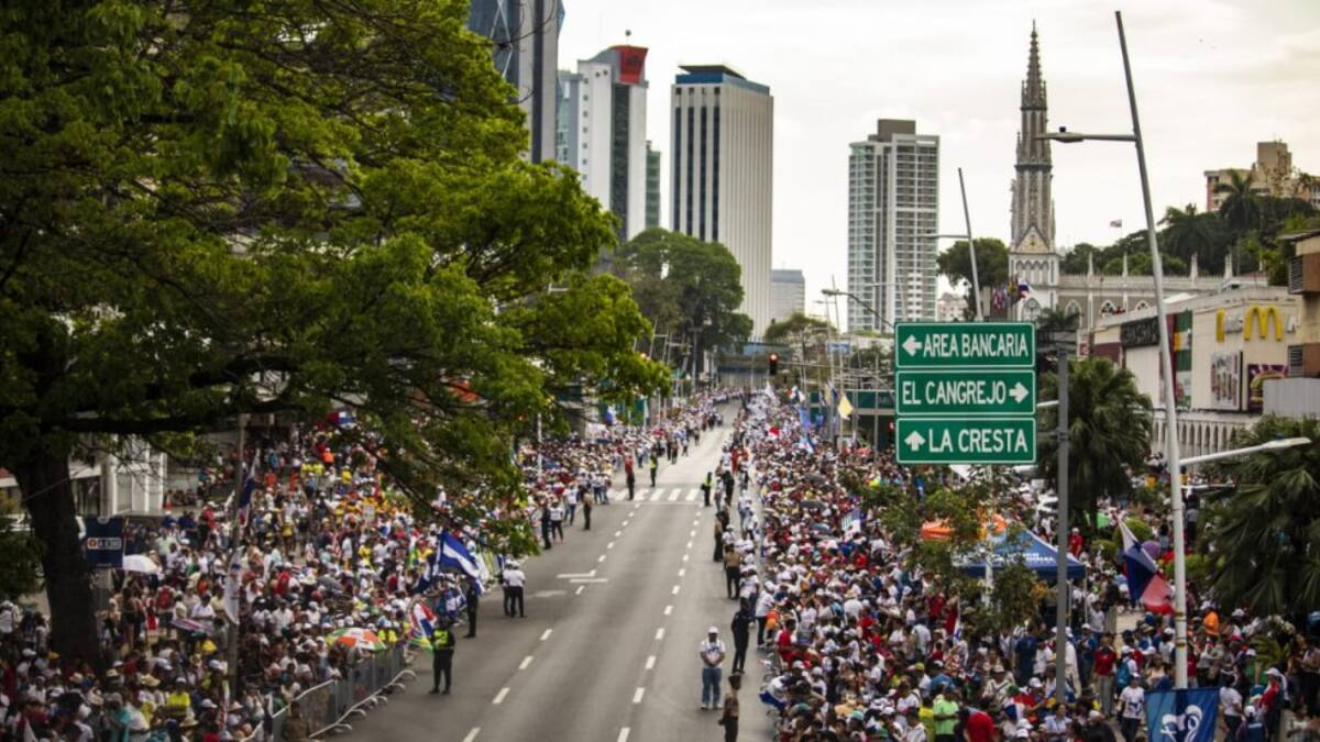 Miles de peregrinos cubiertos de banderas reciben al papa en Panamá