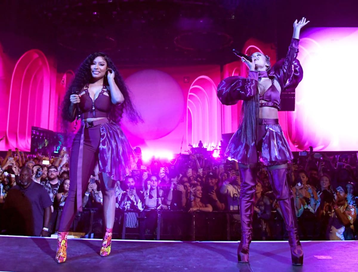 Y mientras Grande se anotaba otro buen tanto con "Side to Side" se subió al escenario Nicki Minaj, quien además de sumarse a esa canción se animó con "Bang Bang".