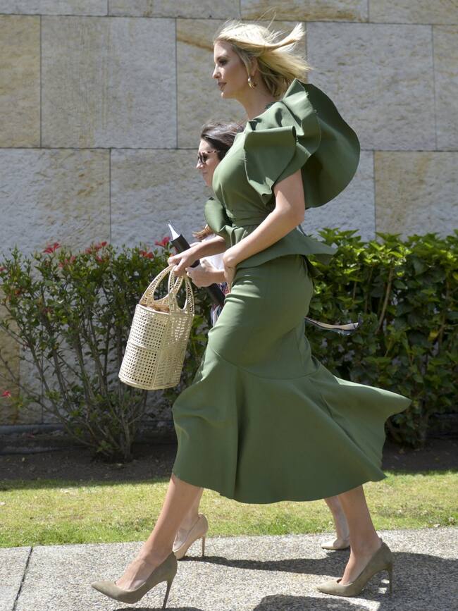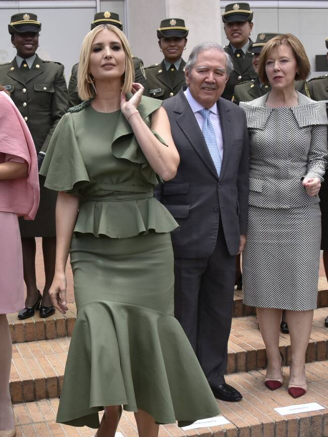 Foto 2 de 11En un hermoso vestido verde, Ivanka sale de la ceremonia en la embajada de EE.UU en Colombia.