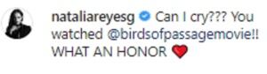 Entre tanto, la actriz colombiana Natalia Reyes, que hizo parte de la cinta, se mostró orgullosa al notar que fue incluía en sus preferidas.