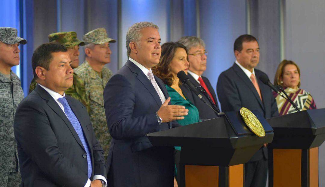 Duque, se refirió al tema durante la presentación de los resultados de seguridad del 2019, en la que estuvo acompañado por la Ministra del Interior, Nancy Patricia Gutiérrez; la Ministra de Justicia, Margarita Cabello; el Ministro de Defensa, Carlos Holmes Trujillo; el Fiscal (e), Fabio Espitia; el Consejero para la Seguridad, Rafael Guarín, y la cúpula militar y de Policía.