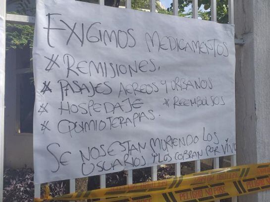 Por su parte, Carlos Pinto, es otra de las personas que se mantiene frente a las instalaciones de Medimás en la lucha para poder obtener la remisión y la entrega de sus medicamentos para poder continuar con su tratamiento de desviación y fractura de columna vertebral y quien además cuenta con cuatro hernias discales, cuya solicitud de pasajes los solicitó hace un año, los programó para los días 14, 15 y 16 de enero y días antes de la cita la empresa les comunicó que no tenían pasajes.