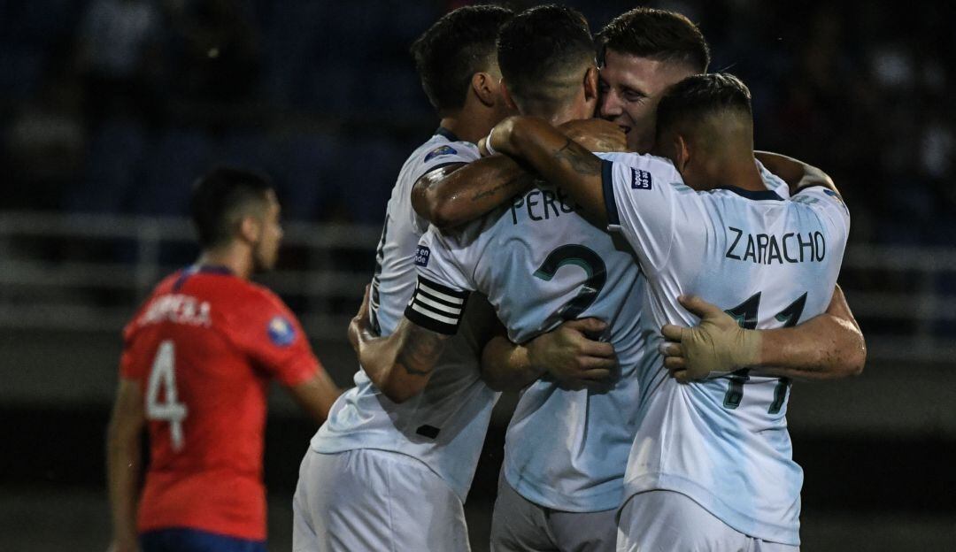 En el estadio Hernán Ramírez Villegas, de Pereira, los tantos fueron obra del centrocampista Nicolás Capaldo, del Boca Juniors, y del central Nehuén Pérez, quien juega en el Famalicao de Portugal cedido por el Atlético de Madrid, en la tercera jornada del Grupo A del torneo que otorga dos cupos a Tokio 2020.