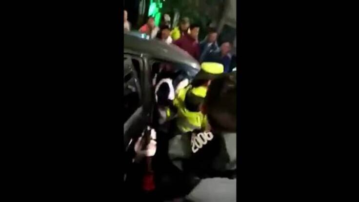 Los sujetos solo gritaban ilegal y pedían a la policía de tránsito que se aplicara el comparendo a los dos ocupantes del vehículo, mientras grababan el hecho.