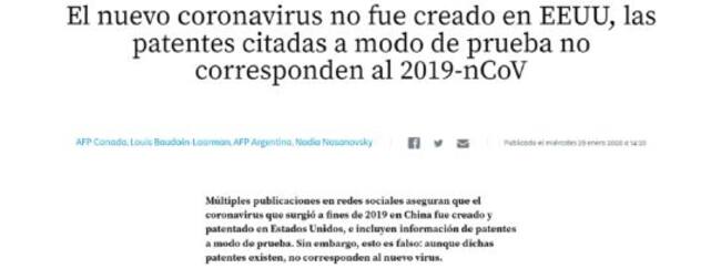 - El nuevo coronavirus fue creado por EEUU, que luego patentó su antídoto: FALSO