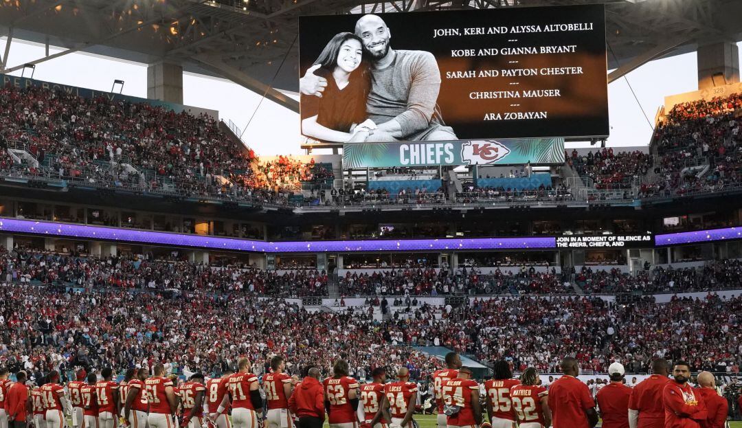 Kobe Bryant es homenajeado por jugadores e hinchas en el Super Bowl