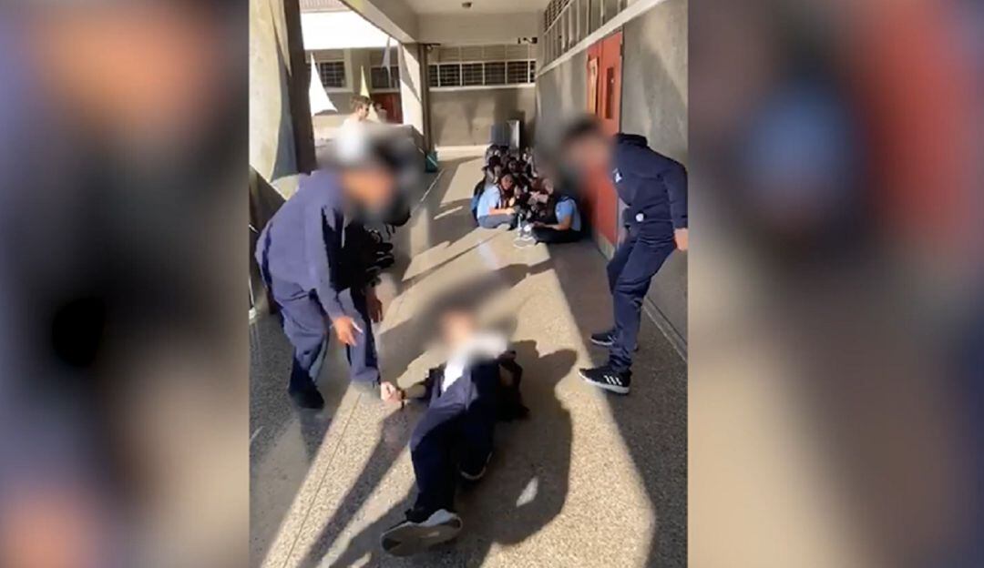 Los videos que muestran como hacen caer a un estudiante, fueron compartidos por redes sociales