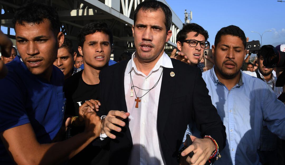 El líder opositor Juan Guaidó, reconocido como presidente interino de Venezuela por más de 50 países, recibió este martes una paliza por parte de una muchedumbre oficialista que lo esperó en el Aeropuerto Internacional Simón Bolívar, que sirve a Caracas, cuando regresaba de una gira internacional de 23 días.