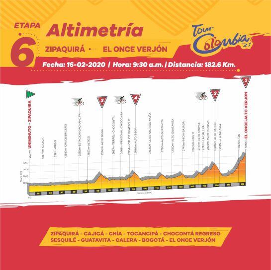 La sexta etapa no tuvo mayores movimientos hasta los kilómetros finales. Antes del último ascenso finalizó la fuga de más de 100 kilómetros y ya en el último puerto se fue quebrando el pelotón, hasta quedar Higuita, Martínez y Bernal en la lucha por la victoria, finalmente se impusieron los hombres del EF al campeón del Tour de Francia.