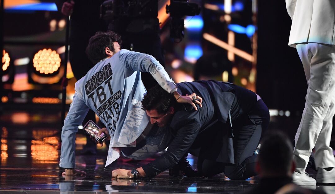 En medio de la emoción por el premio que acababan de ganar, Sebastián Yatra y uno de los integrantes de Reik terminaron en el piso.