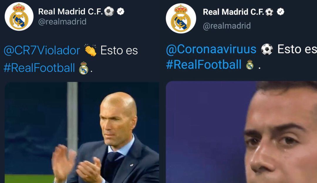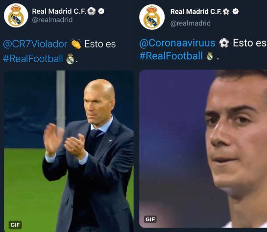 Dos mensajes bastante extraños aparecieron en la mañana del miércoles 26 de febrero en las redes sociales del Real Madrid. El primero de los mensajes que se publicó se etiquetó a una cuenta parodia sobre el Coronavirus, además iba acompañada de un gif con Lucas Vásquez como protagonista.