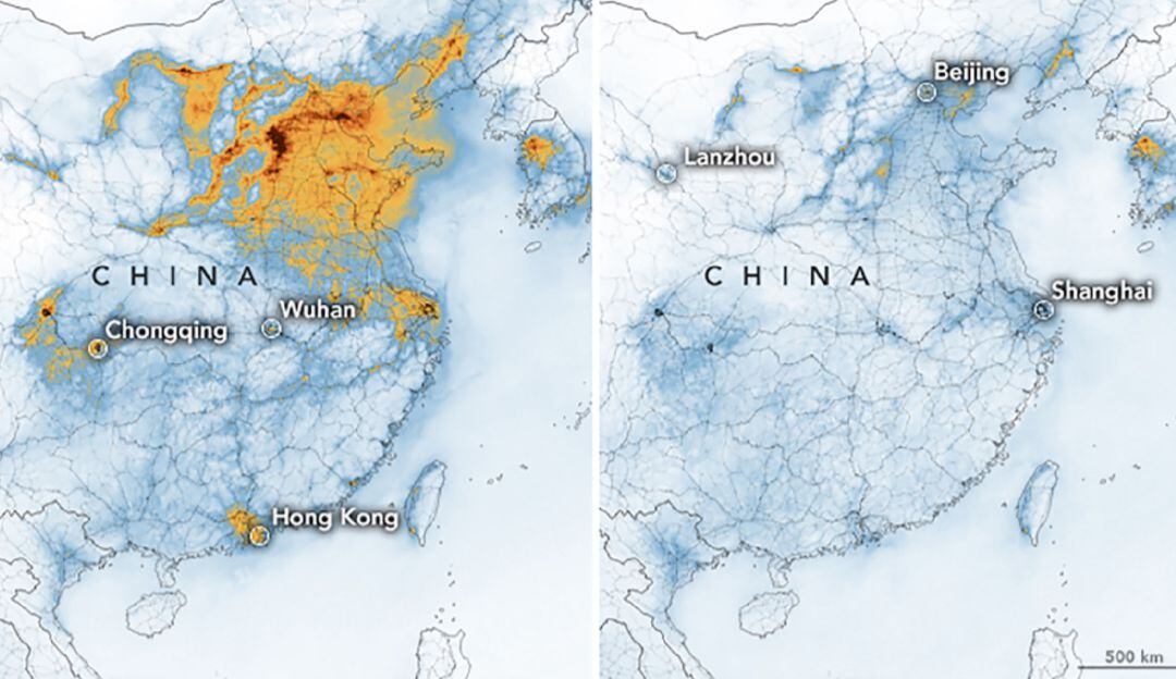 La NASA revela caída de contaminación en China por Coronavirus