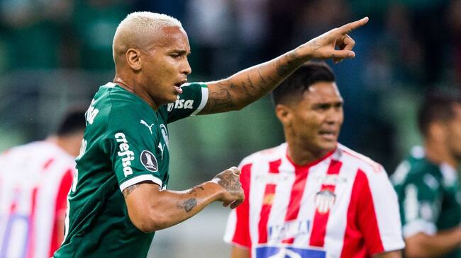 El último partido de Junior con un brasileño fue ante Palmeiras en 2019. Al fondo se puede observar a 'Teo' Gutiérrez.(Getty Images)