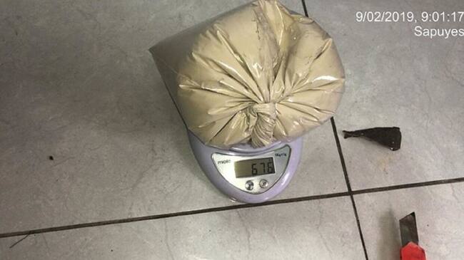 La imagen de un delfín es lo que reposa en los 24 kilos de cocaína que incautaron la Policía y la Fiscalía en una vivienda de Buenaventura, Valle del Cauca, este sábado.