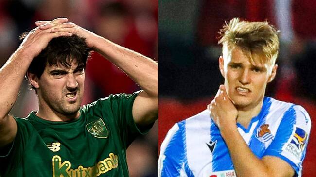 Los jugadores Mikel San José (Athletic Club) y Martin Ødegaard (Real Sociedad). / Getty Images
