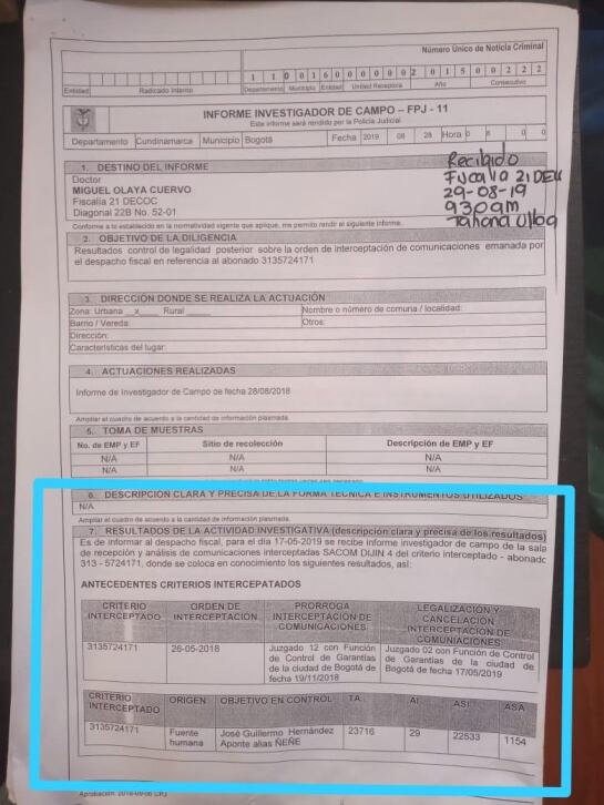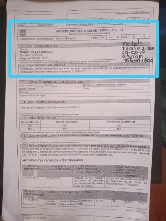 En los documentos, se demostraría que la Policía sí le informó a la Fiscalía sobre la existencia de los audios y su contenido. Esta versión fue corroborada por el abogado Miguel Ángel del Río, quien es apoderado de víctimas en un proceso por homicidio que salpica al ‘Ñeñe Hernández’ y a ‘Marquitos Figueroa’.