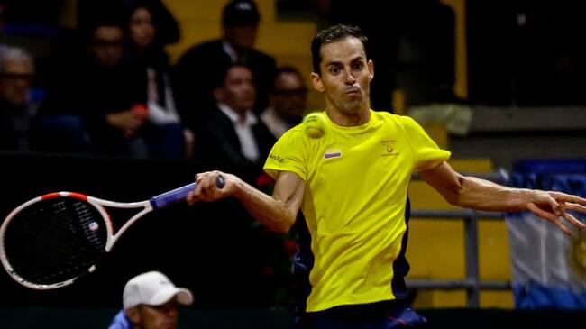 Santiago Giraldo durante el repechaje contra Argentina en la Copa Davis 2020.(Colprensa)
