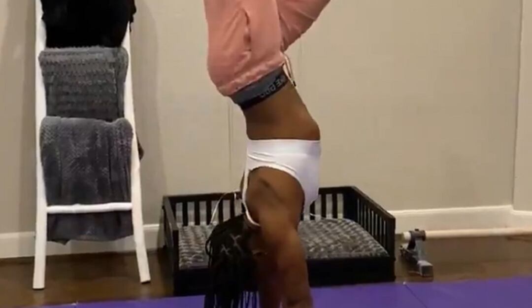 La gimnasta estadounidense hizo gala de su capacidad con el denominado "handstand challenge".
