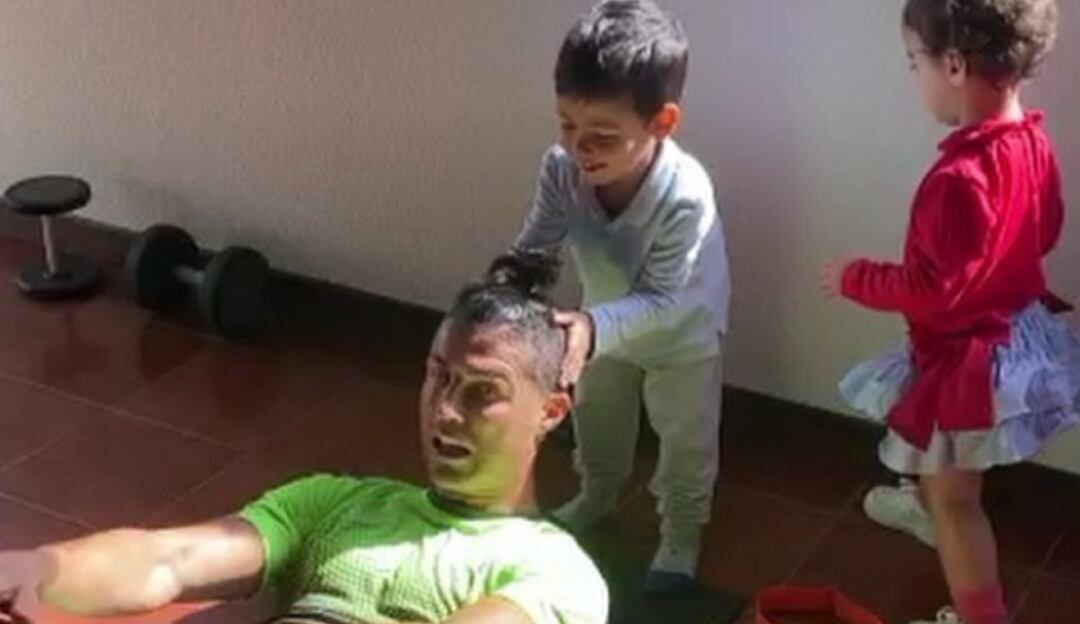 Cristiano Ronaldo se entrena en casa con ayuda de sus hijos