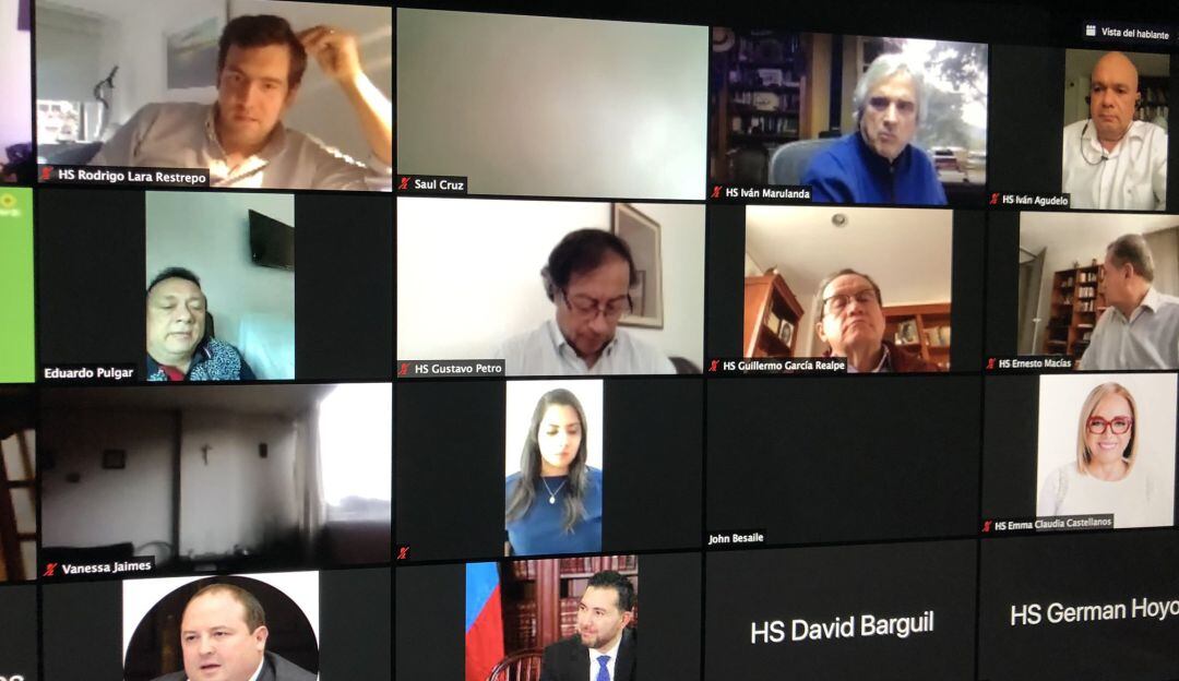 Sin embargo, llamó la atención la presencia virtual del senador de la Colombia Humana, Gustavo Petro, luego de haber sido intervenido quirurgicamente esta mañana en Cuba para confirmar la existencia de un posible cáncer de esófago .